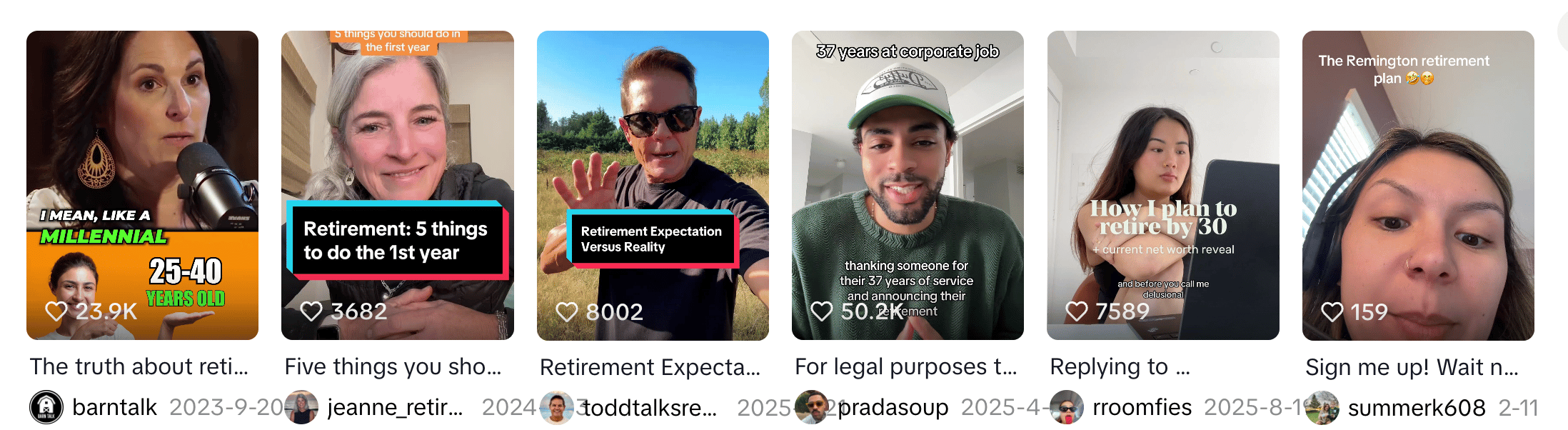 It’s actually 30-somethings explaining why they’re trying to retire by 40, spreadsheet-obsessed FIRE (Financial Independence, Retire Early) devotees calculating their “coast number,” and a growing chorus of people admitting that the traditional version of retirement— the one we were all supposedly working toward— feels less like a goal and more like a myth.